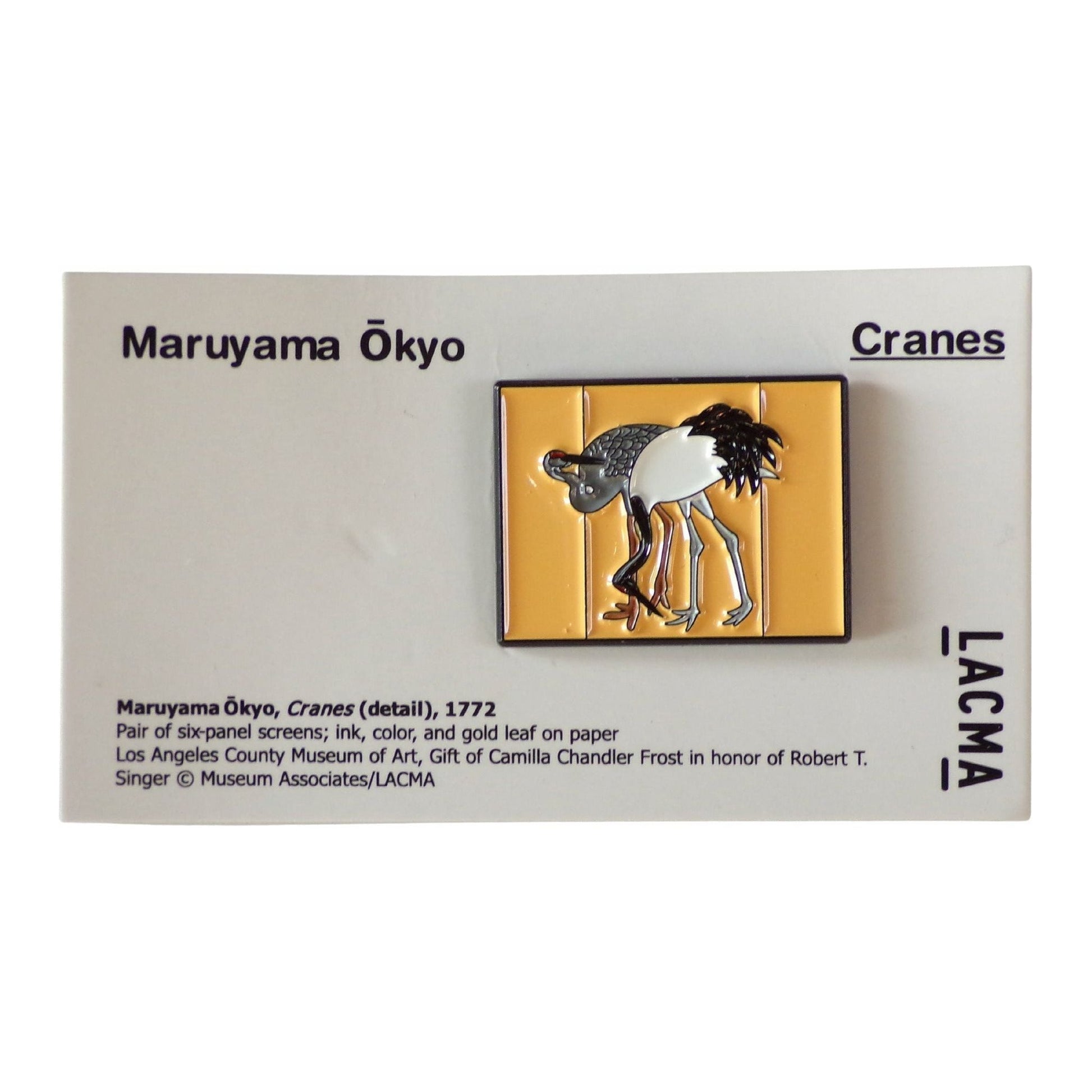 This pin is based on a detail from Cranes (Japan. 1772) by Maruyama Ōkyo (Japan. 1733-1795) in LACMA's permanent collection.