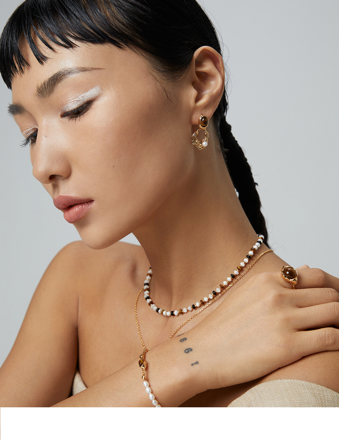 Material: S925 silver/tiger eye stone/silver silk shell/black agate Color: vintage gold Size: chain length about 38cm + 6cm extension chain, stone about 4mm